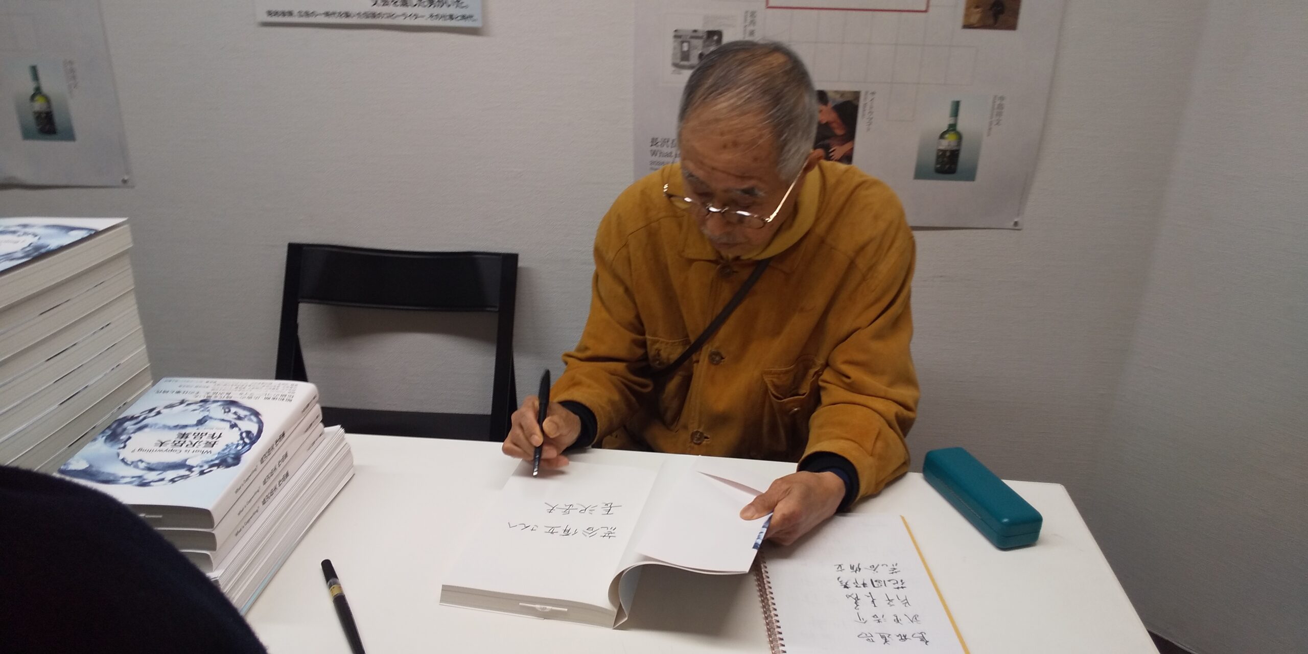 お買い上げの本にサインを入れる長沢さん