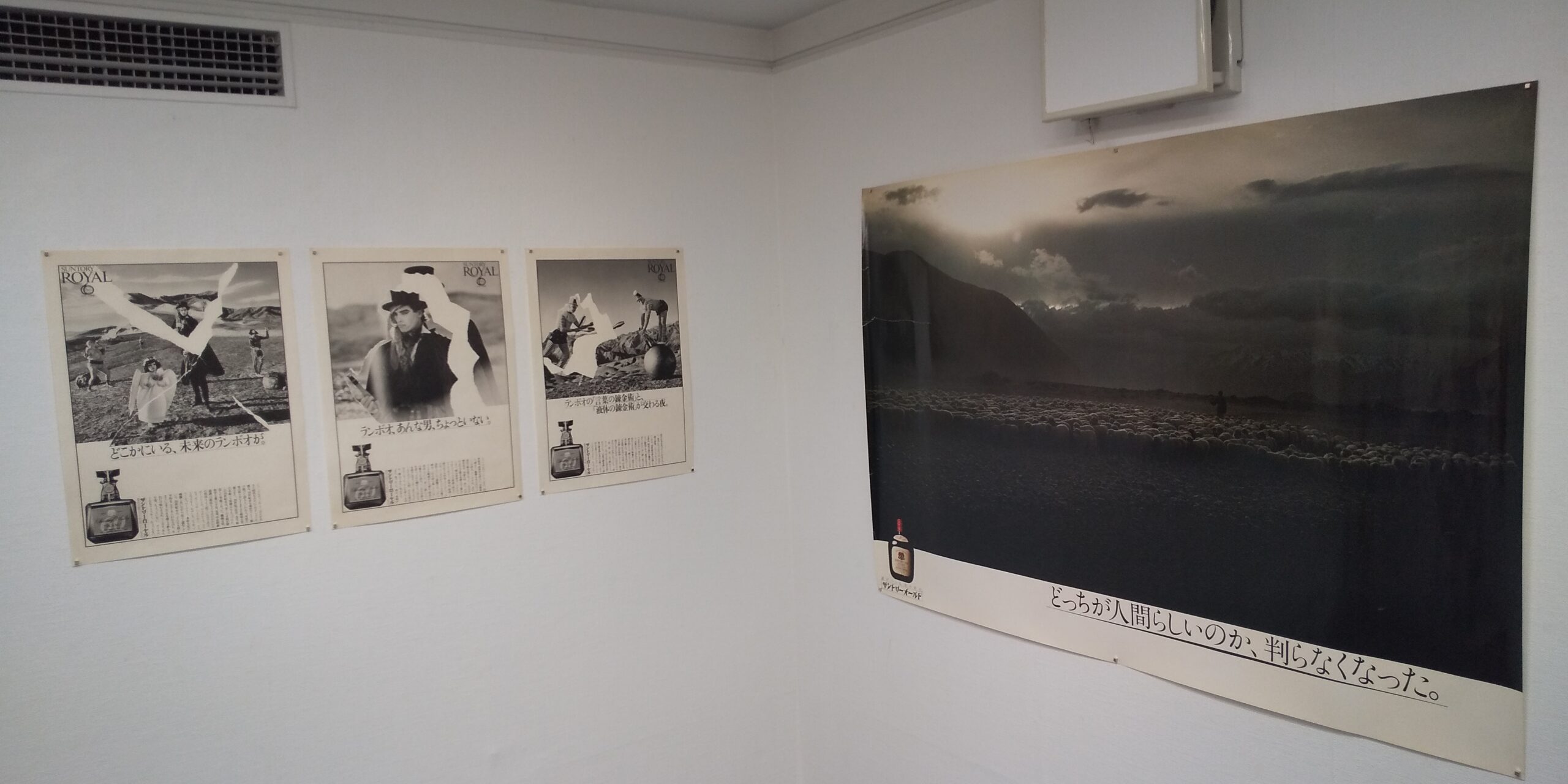 一番奥のコーナー。左は半分はサントリーローヤルの「ランボオ」のポスター。右はサントリーオールドの「羊飼い」。